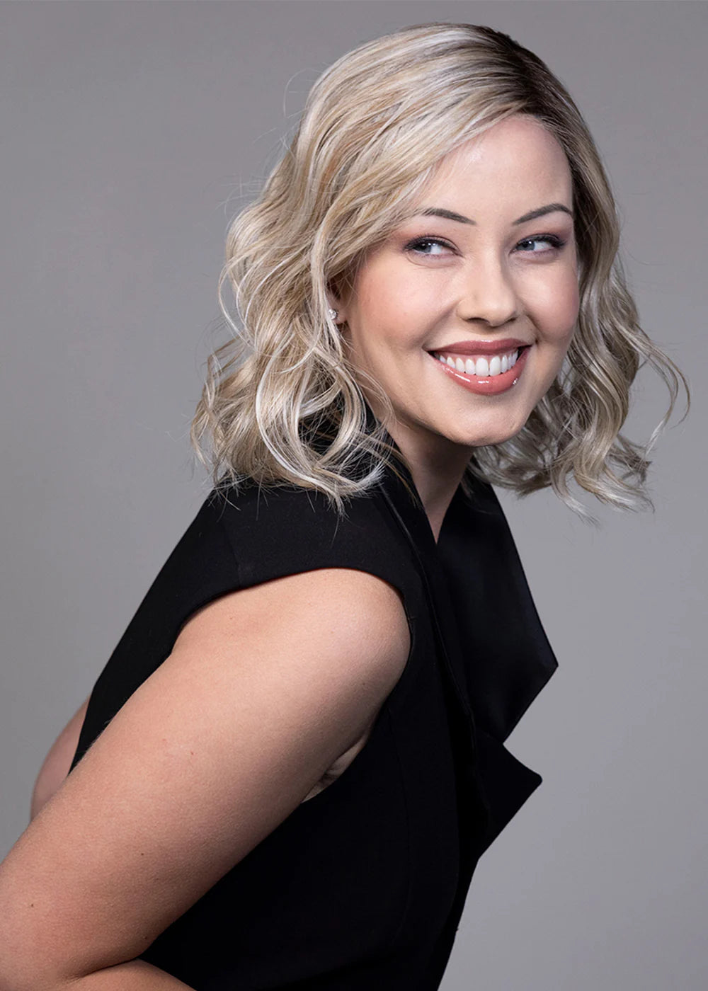 Amaretto is a headful of soft, tousled waves that land just above the collarbone. With natural-looking dark roots and a deep side part, this is a little bit sassy and ever so sweet. Get ready to turn heads with the effortless and stylish Amaretto.